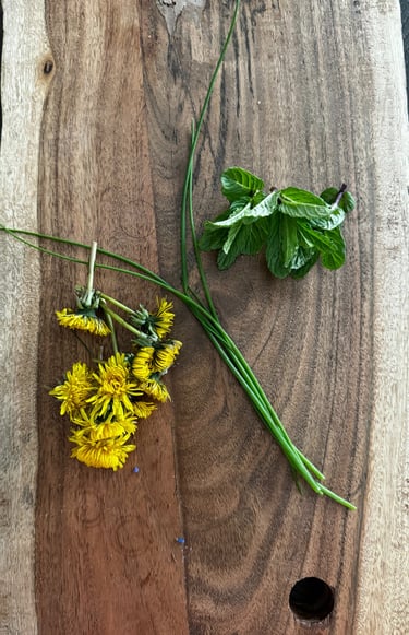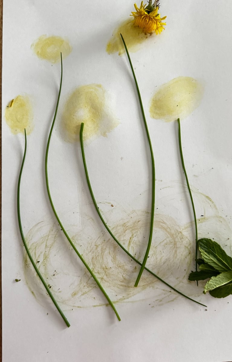o Painting with natural materials; Dandelions, chives, mint